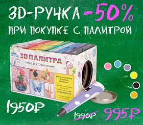 При заказе 3D-ручки вместе с 3D-палитрой – стоимость ручки составит 50% от...