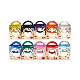 Набор пластика для 3D-ручки 3D-Палитра (WATSON) включает в себя 10 кассет, каждая из которых содержит в себе яркую нить полупрозрачного пластика длиной 10 метров. Также в набор входит тубус для хранения 3D-ручки и обучающие трафареты, с помощью которых ребенок легко и с удовольствием освоит процесс 3D-рисования.