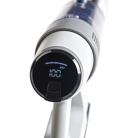 Беспроводной пылесос Даджет V450 оснащен большим цифровым дисплеем, на котором отображается вся необходимая информация: индикация заряда батареи, выбранный режим работы, информация о необходимости очистки фильтра.