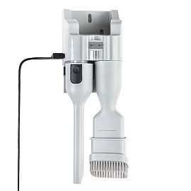 В комплекте есть удобная система хранения и зарядки беспроводного пылесоса, которая размещается на стене и занимает минимум места. Поэтому нет необходимости хранить пылесос в коробке или искать какое-либо другое место.
